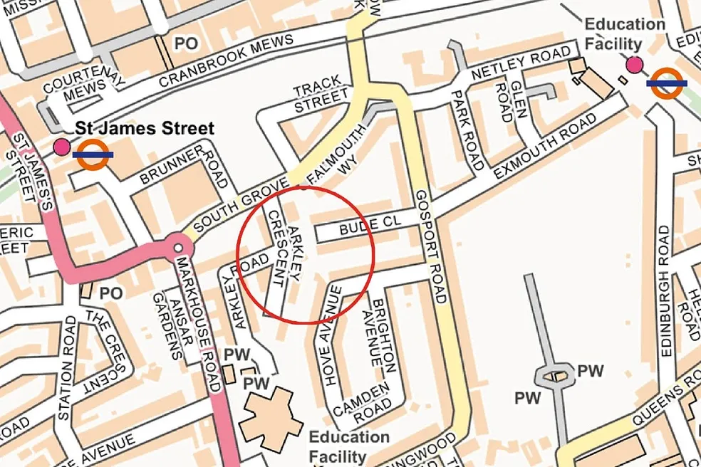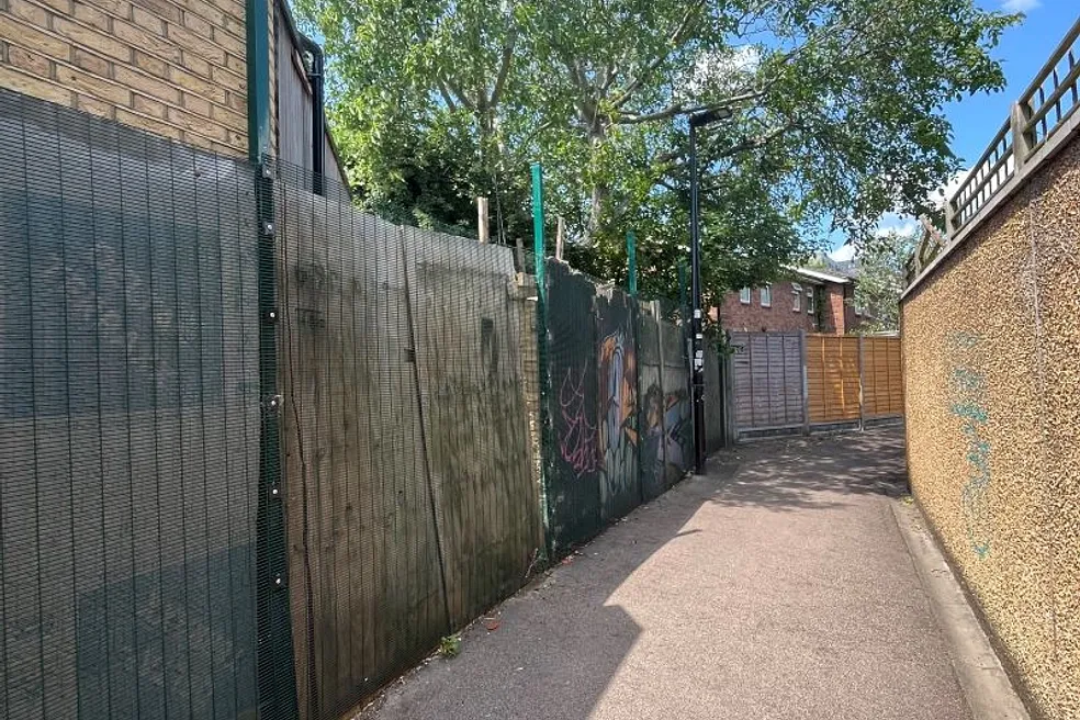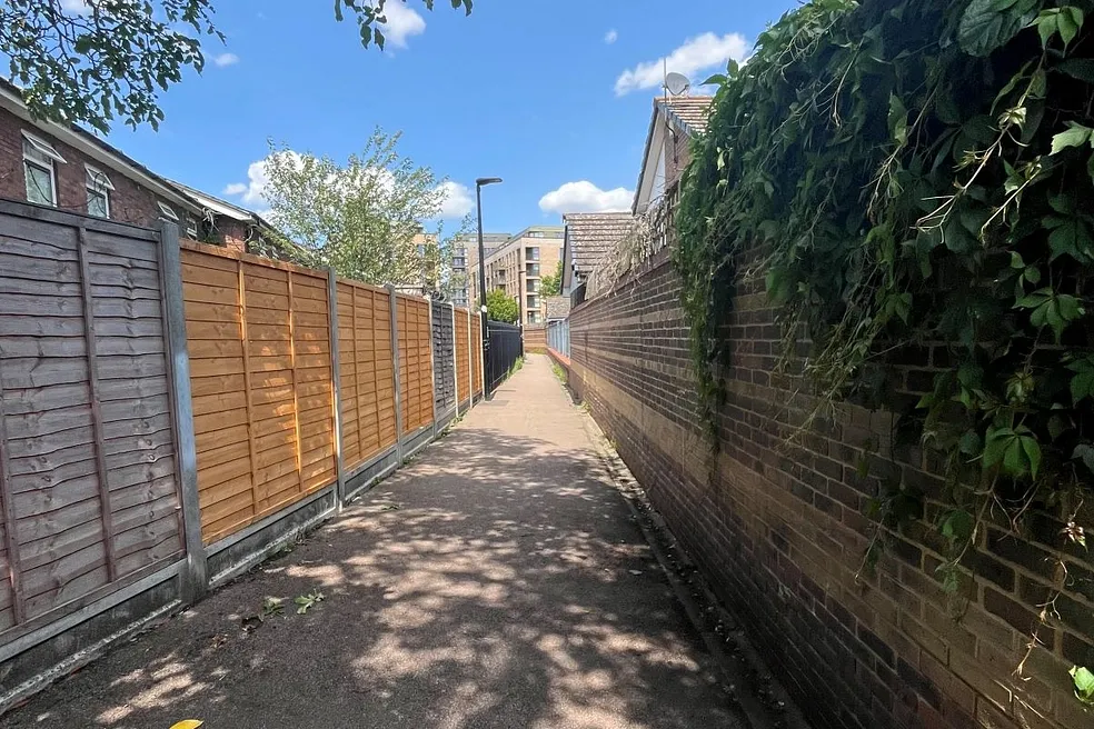 The property is located on the east side Arkley Cresent, in South Walthamstow, between house numbers 19 and 21. It is located in a residential estate of ex-local authority, terraced housing and is land locked. A public path to the rear of the site runs between South Grove and Hove Avenue. St. James Street Station (Weaver Line), is 150m to the north west. The property is a roughly rectangular parcel of land of approximately 85 Sq M.