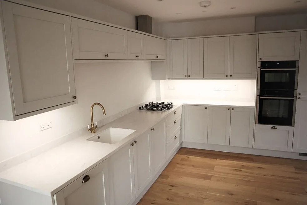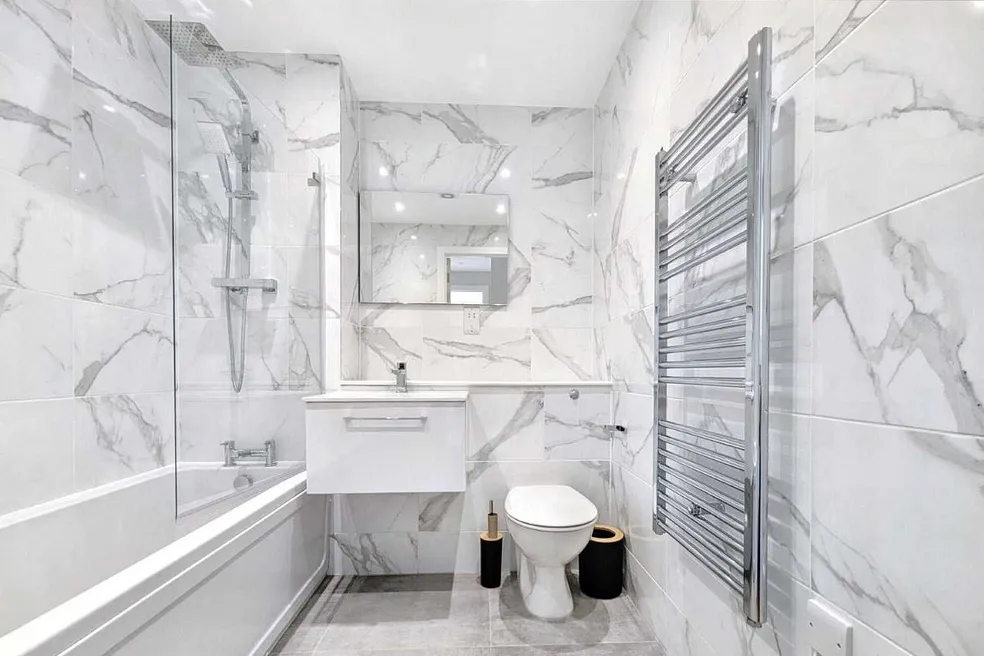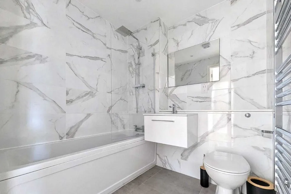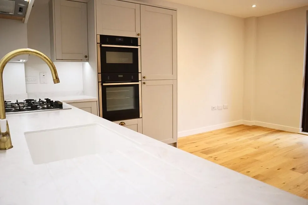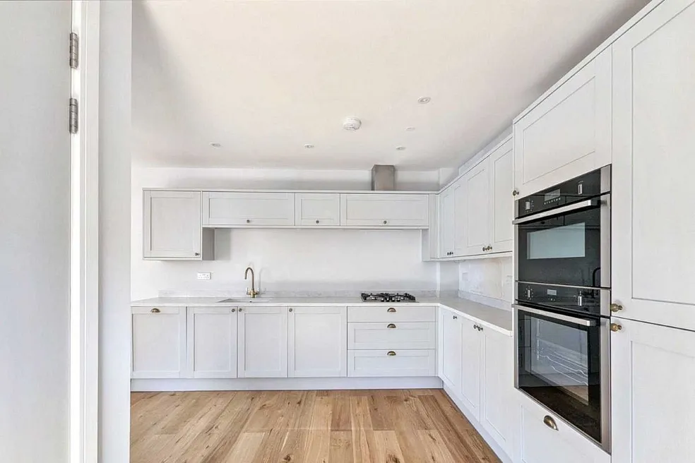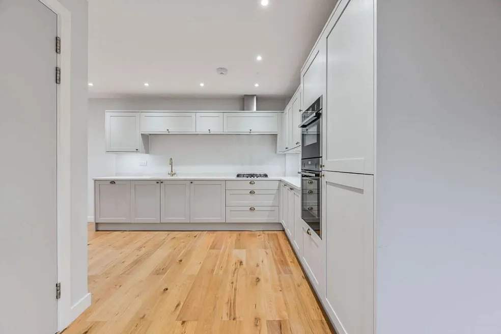 This new-build property offers a double-aspect open-plan lounge/kitchen/diner on the ground floor, thoughtfully arranged around a central staircase and featuring integrated storage for a clean, contemporary layout. On the first floor you’ll find two generously sized bedrooms plus a fully tiled family bathroom. From there a final staircase leads up to a beautiful roof terrace, which is accessed via an electronic roof door and enjoys elevated views of the surrounding neighbourhood. Located in t