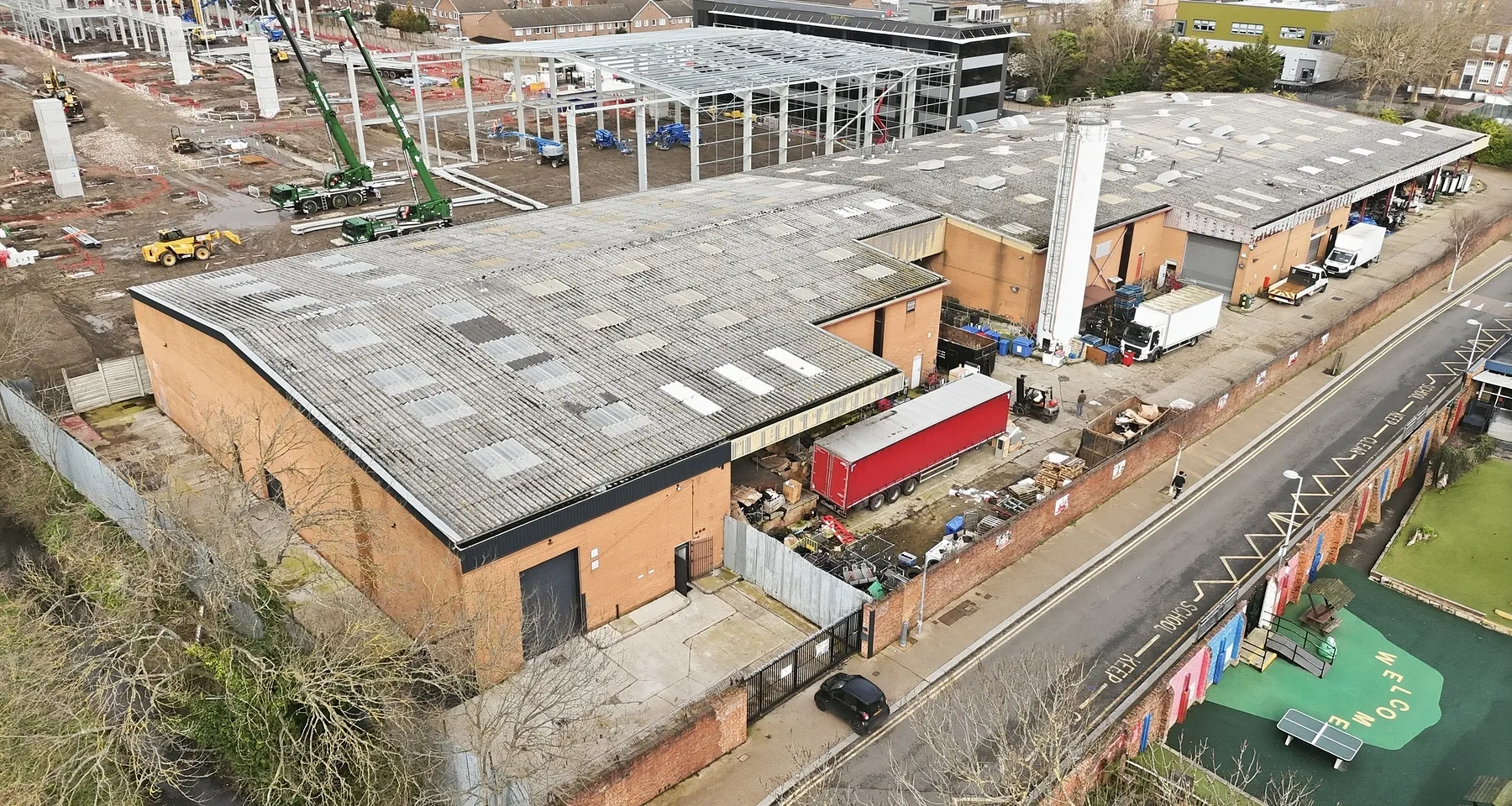This end of terrace unit is undergoing comprehensive refurbishment to provide clear span accommodation with offices at first floor level. The property benefits from its own secure loading area and parking. There are 2 roller shutter doors. The front elevation roller shutter is 7m x 2.9m and the side elevation roller shutter is 3m x 2.4m. The eaves height is 6.8m