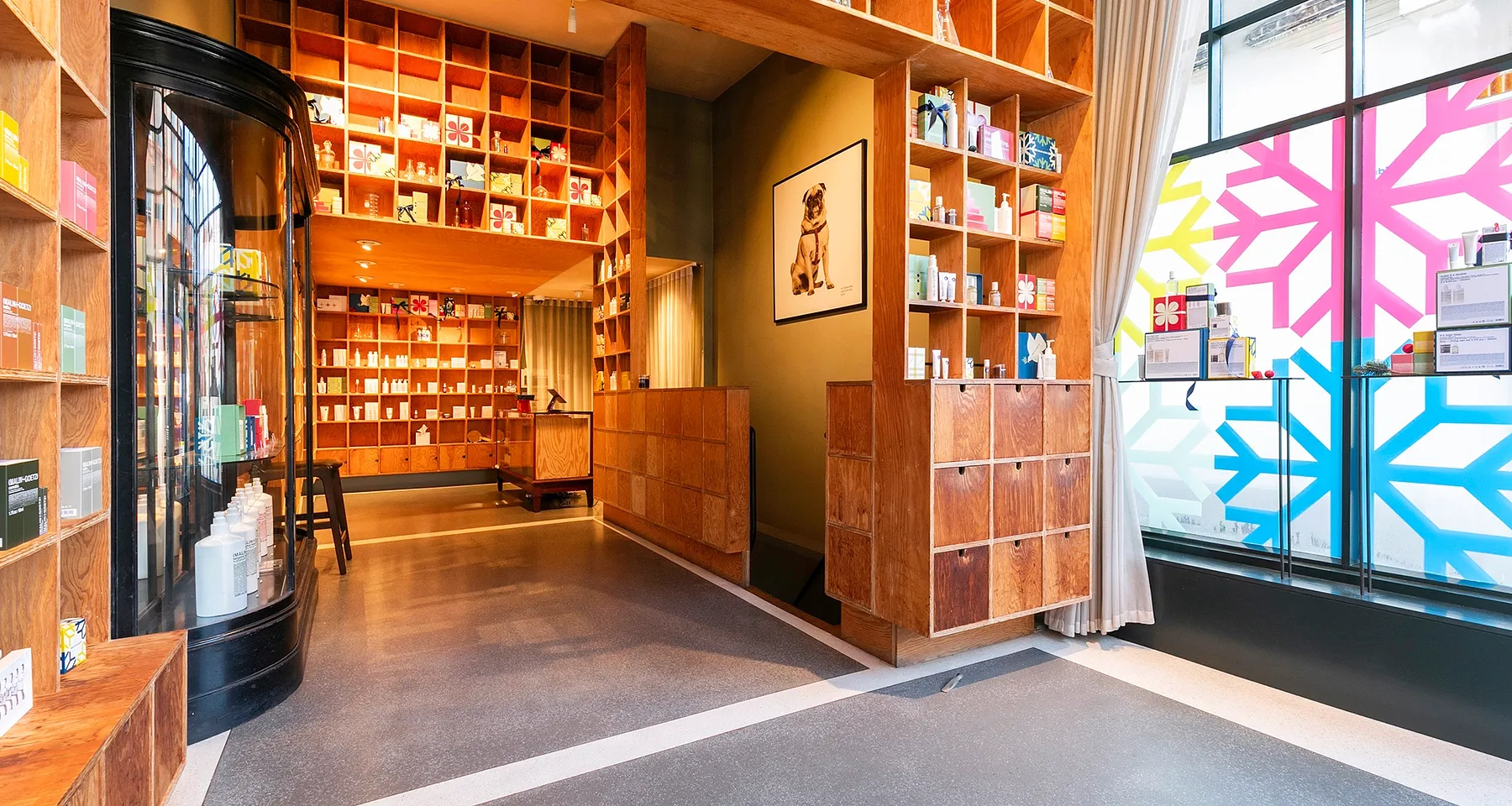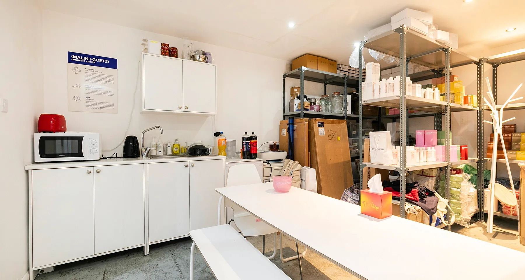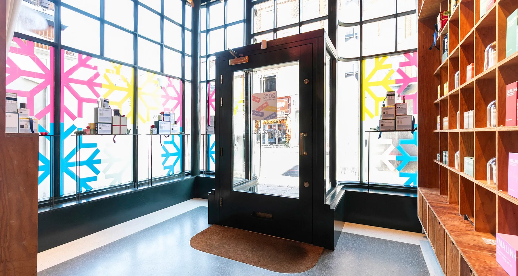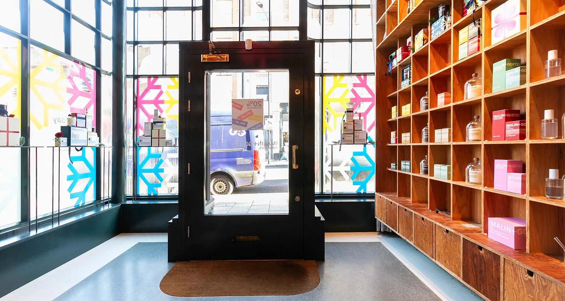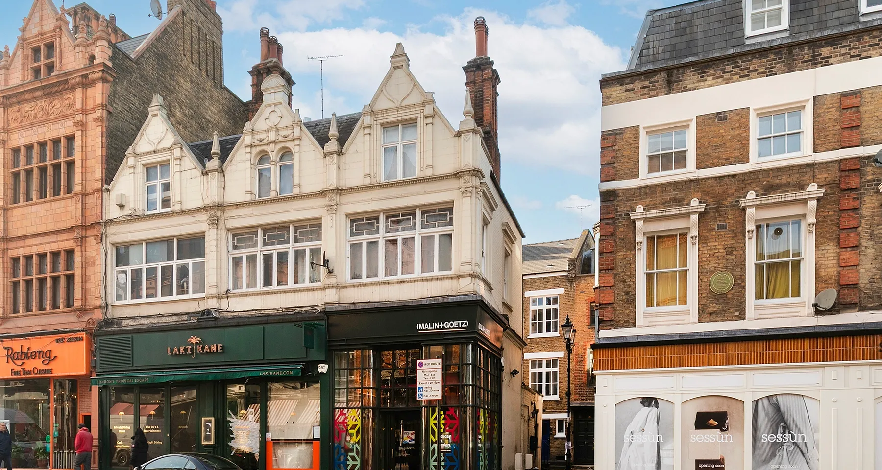 The premises occupy the ground and basement floors of a characterful end-of-terrace, corner, mixed-use three-storey building. Currently home to Malin & Goetz, whose lease expires in April 2026, and who have occupied the space since 2015. The ground floor features a striking curved glazed entrance and floor-to-ceiling glazing, providing excellent natural light, high ceilings, and a high standard of decorative finish. The basement is in good condition, featuring painted concrete floors, sunken spotlights and a ceiling height of 2.37 metres with kitchen and WC.